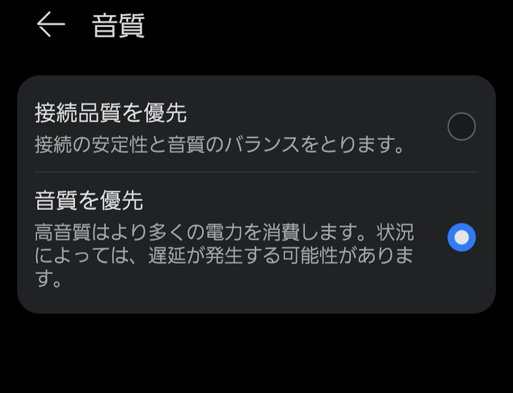 「音質を優先」にするとコーデックがLDACになります。