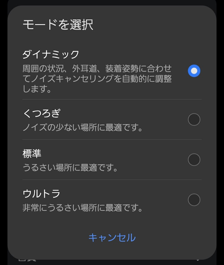 自動で加減を調整するモードと、3段階のノイズキャンセリング調整することができます。